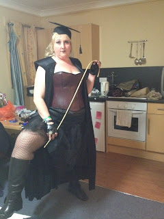 I know! I can't quite believe I went out in public like this (though you should have seen some of the other outfits). I was quite tipsy on vanilla vodka and AfterShok though! I did have a jolly time scaring the life out of various men who were dressed as school boys. I was asked to spank.....so after making them say please I did....